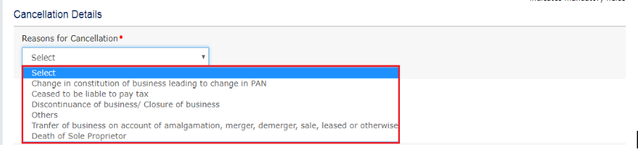 Reasons for GST Cancellation