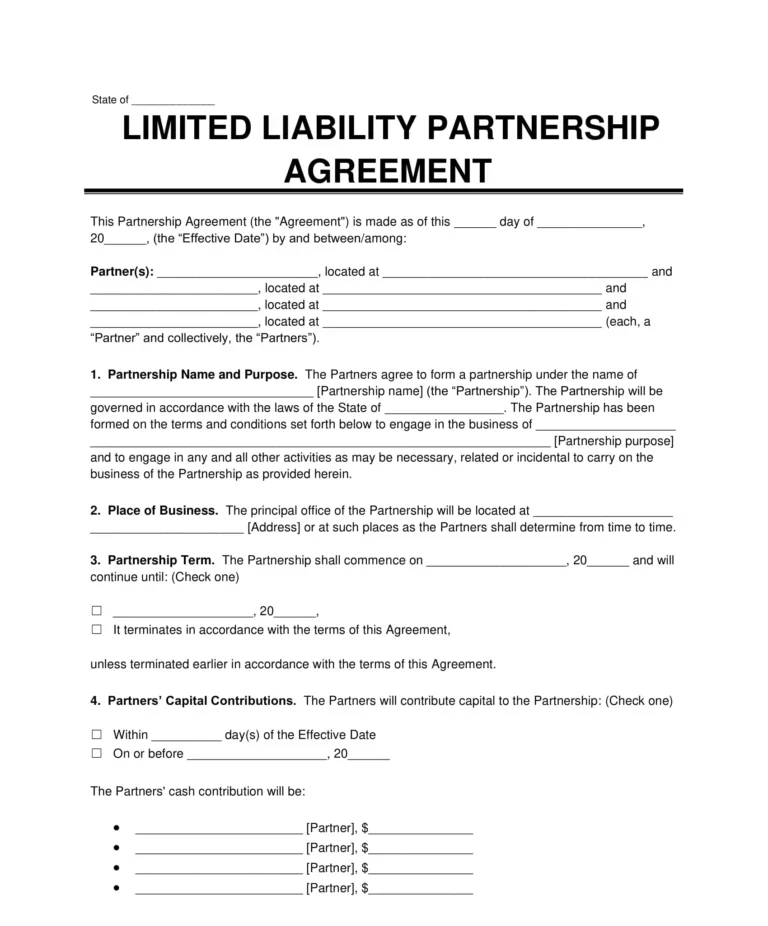 - Capital Contribution: How much money or assets each partner brings into the LLP.