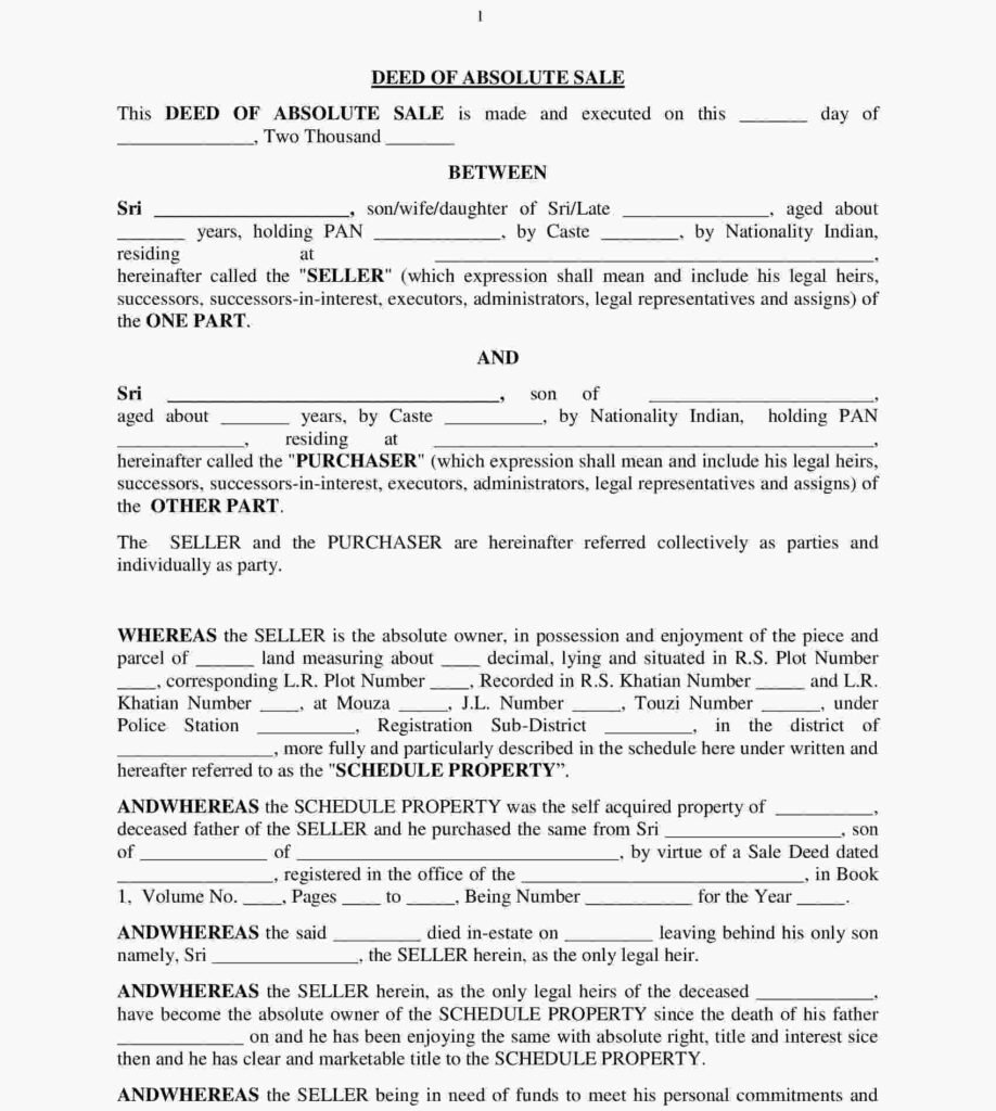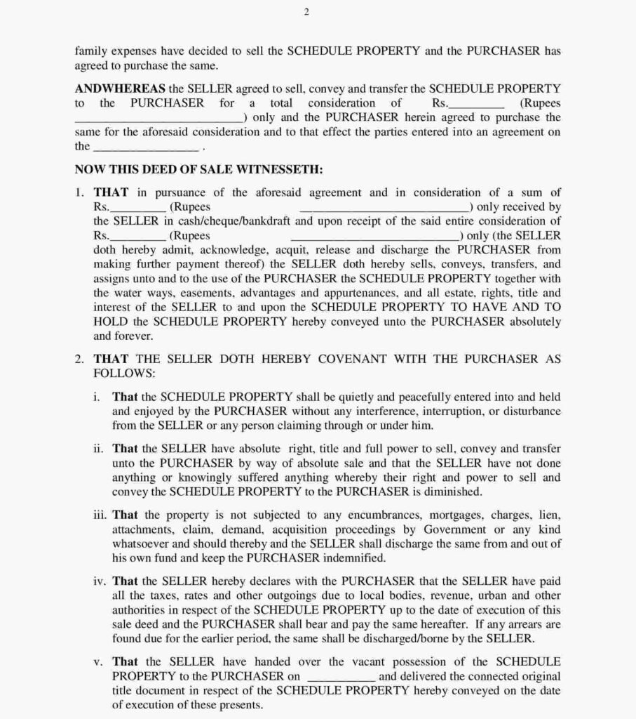 Drafting a Sale Deed requires precision and legal expertise. Here’s a general outline: