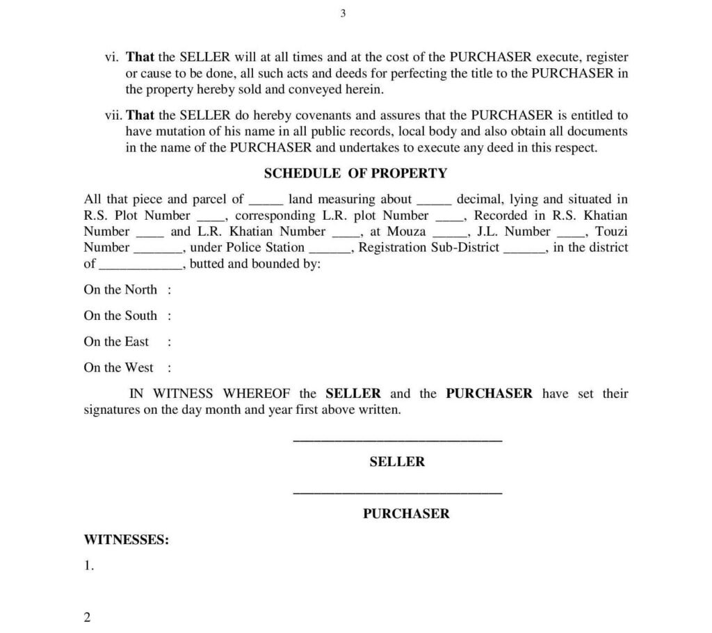 - Legal Heirs Clause: States that the rights and obligations under the sale deed will transfer to the legal heirs of both parties in case of death.